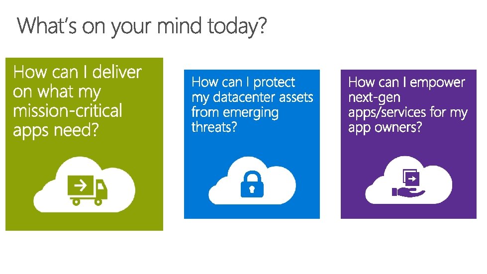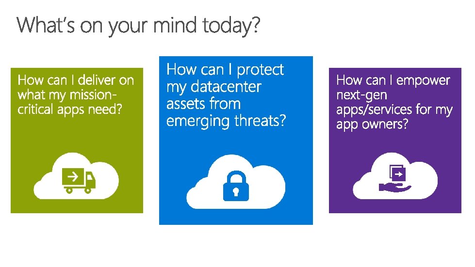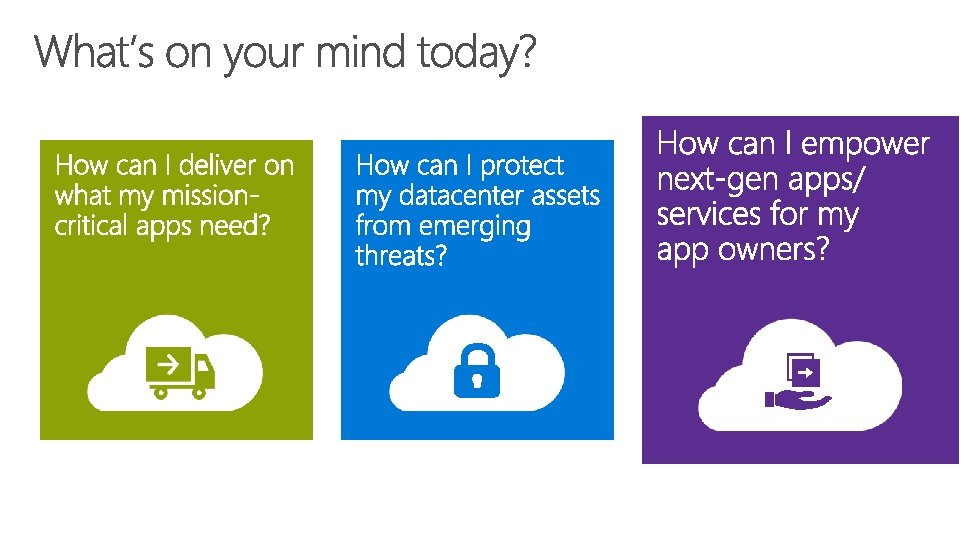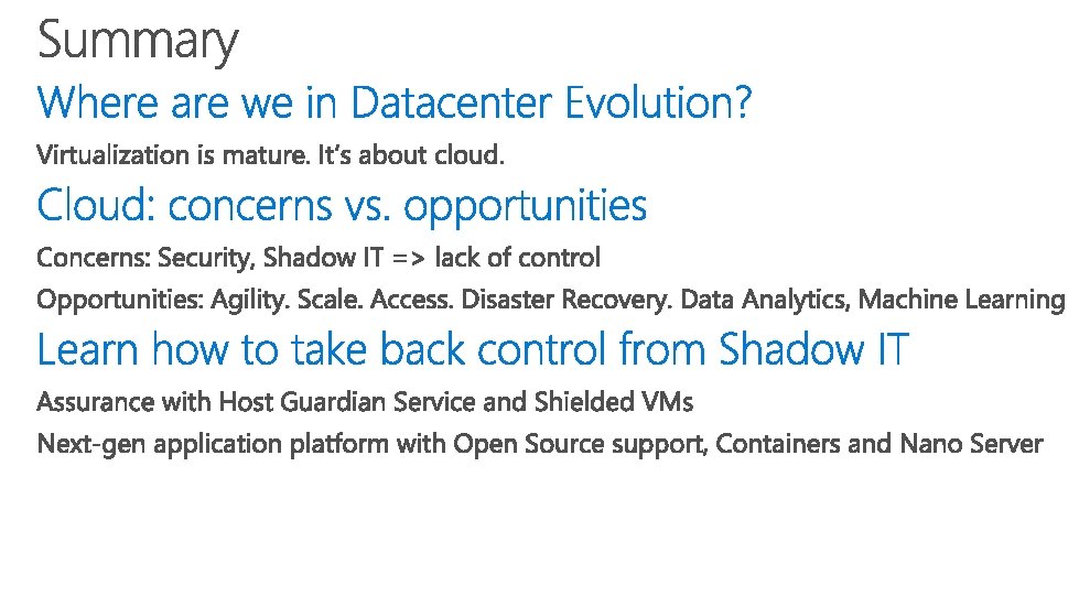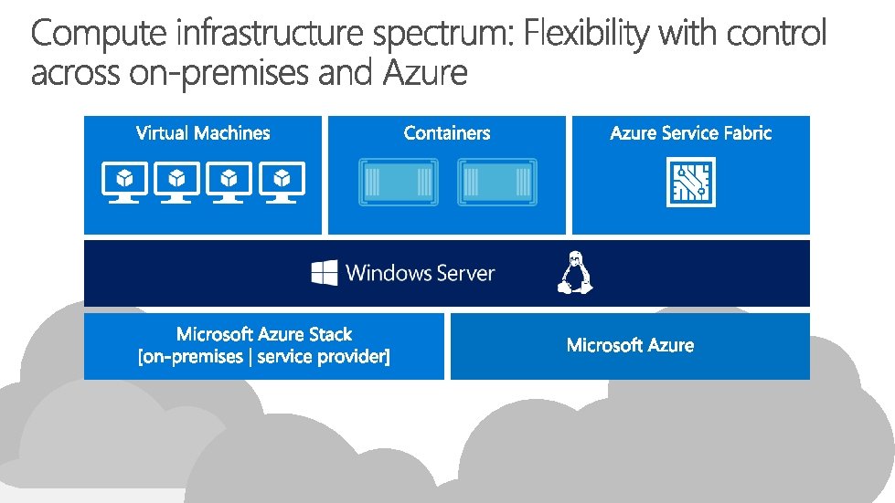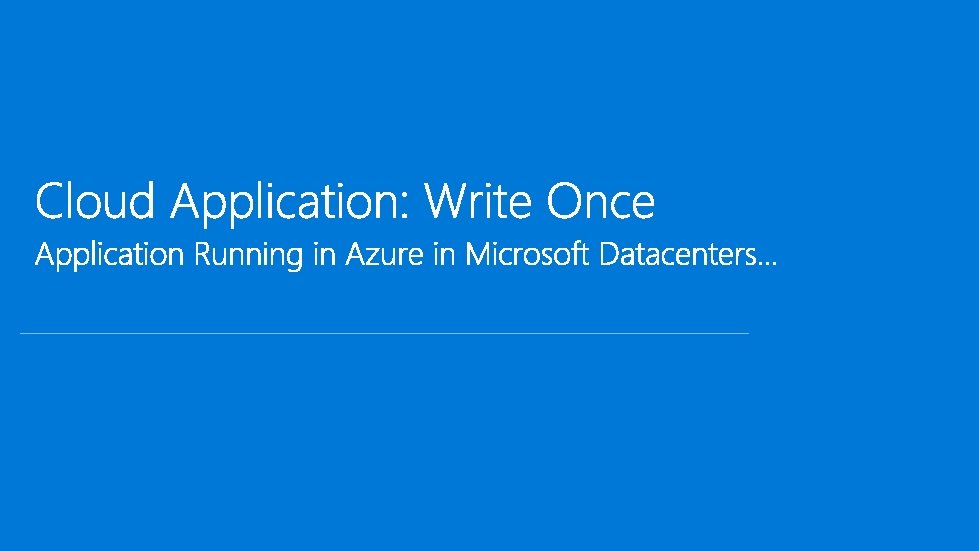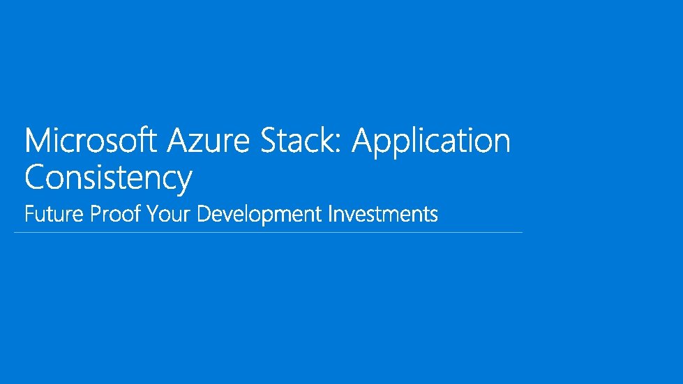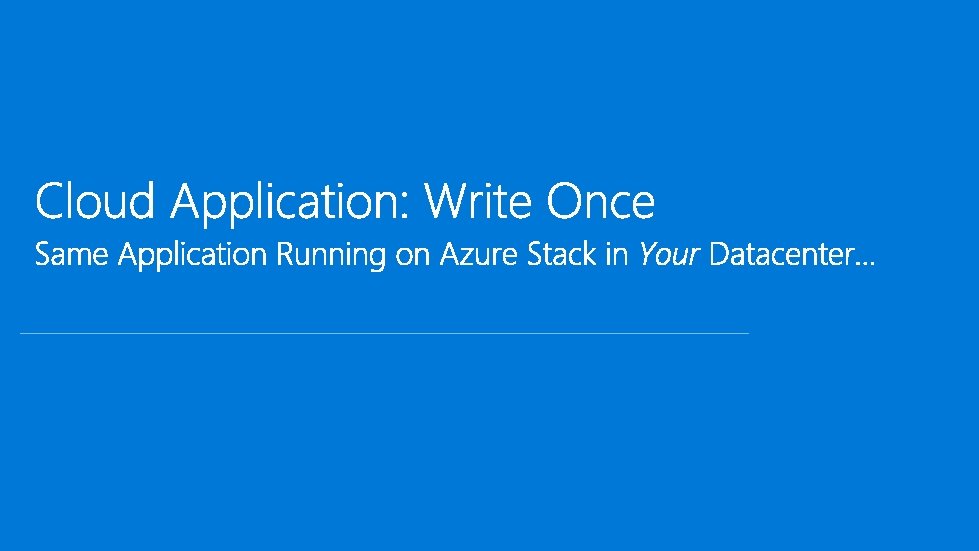 The Azure Platform Strategy Security & Management Saa. S Hybrid Operations Security & Management Public Cloud Platform (Software as a Service) O 365, CRM, VSO etc… + rd 3 Party Saa. S Solutions Microsoft Azure Stack & Cloud Platform System Public, Global, Shared Datacenters