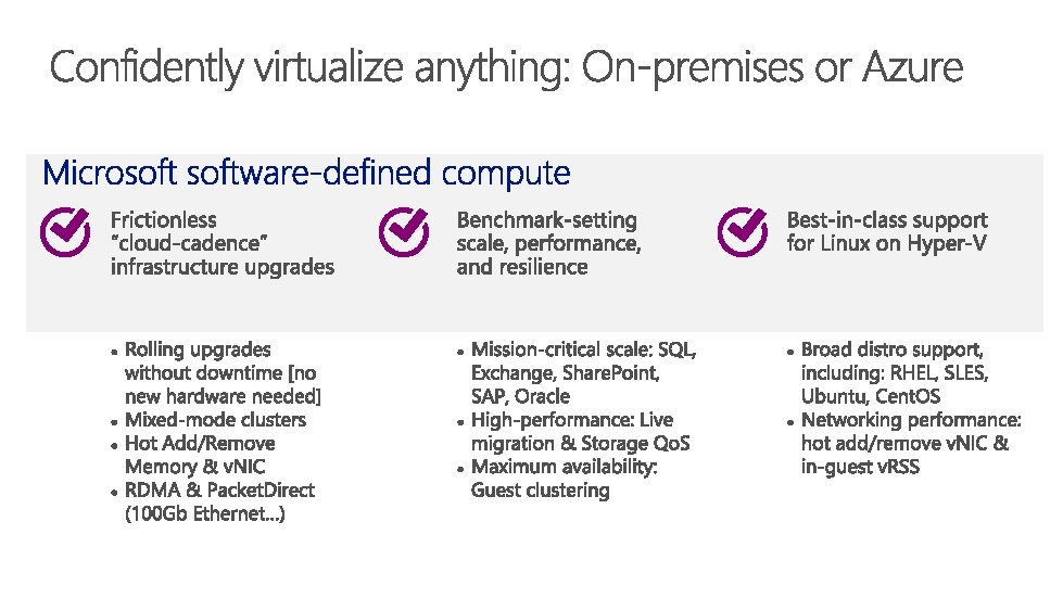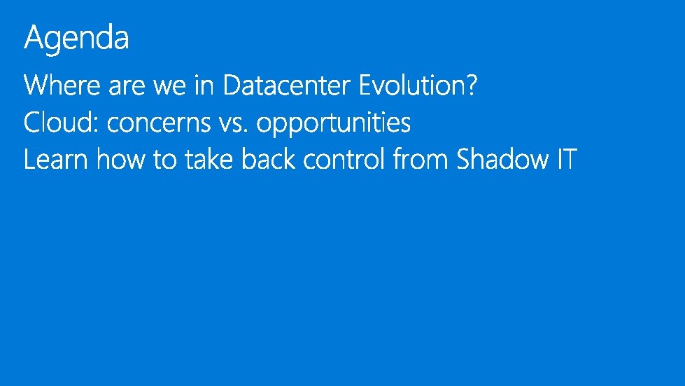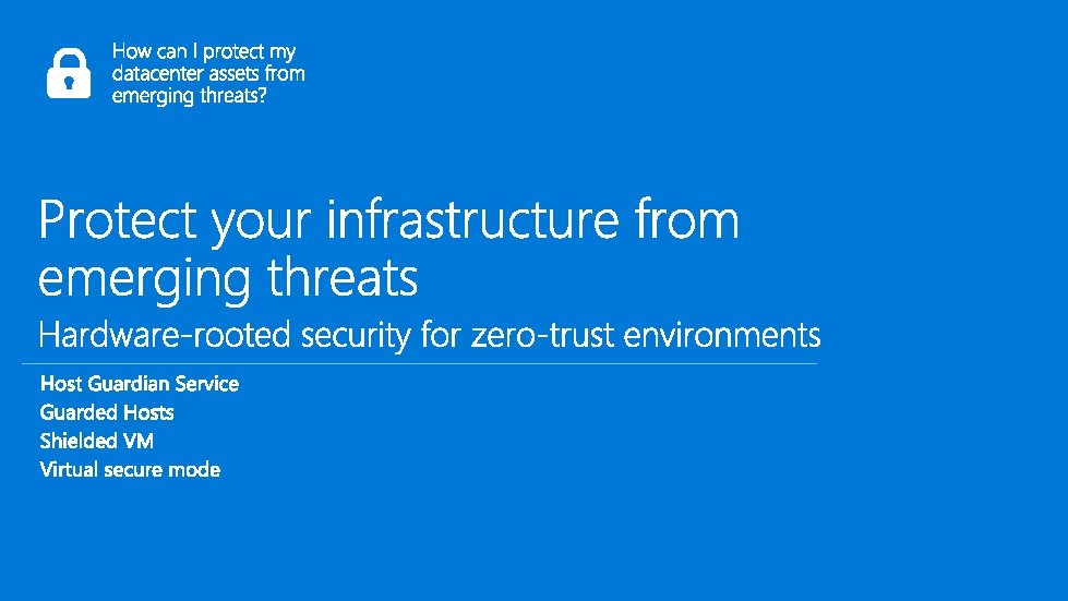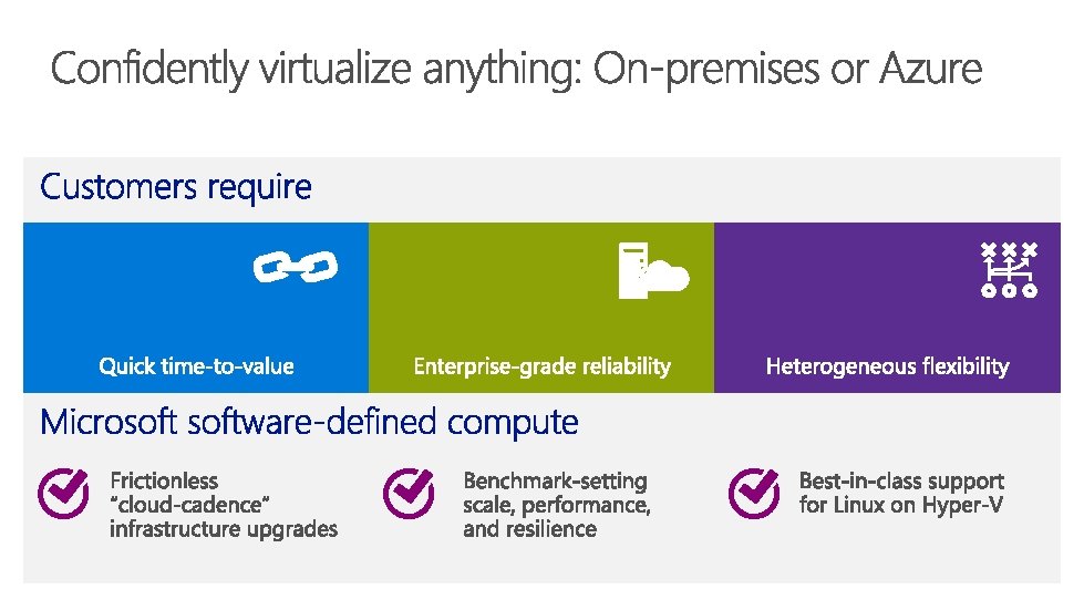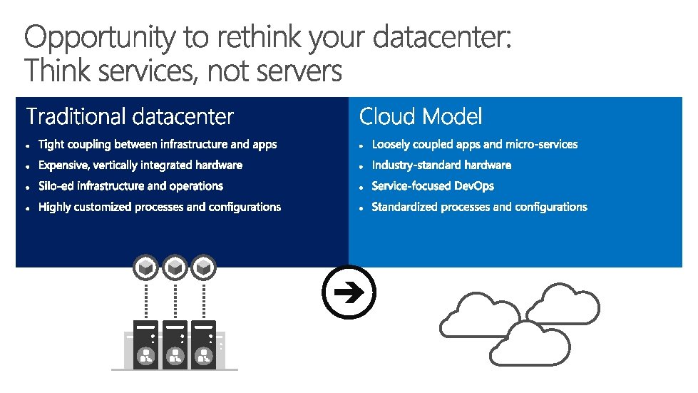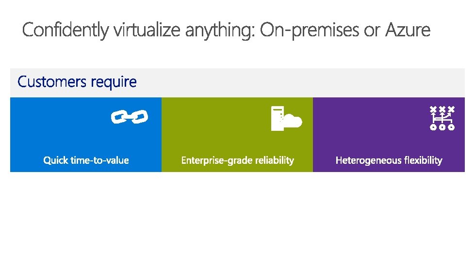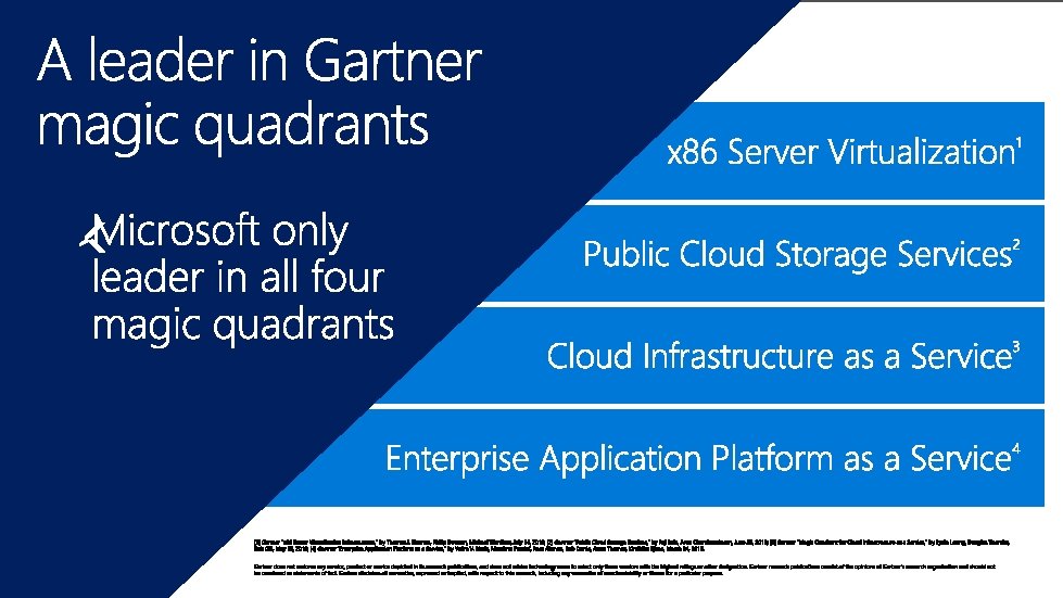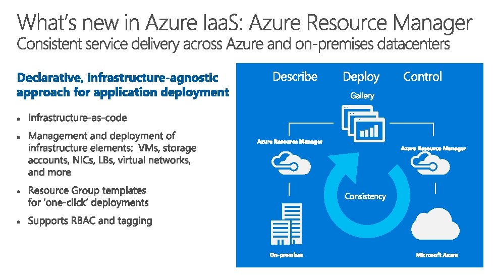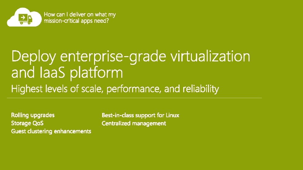 The Azure Platform Strategy Security & Management Saa. S Hybrid Operations Security & Management Public Cloud Platform (Software as a Service) O 365, CRM, VSO etc… + rd 3 Party Saa. S Solutions Microsoft Azure Stack & Cloud Platform System Public, Global, Shared Datacenters