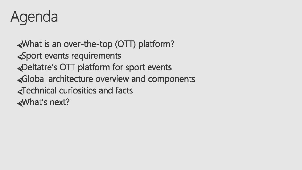 First project full Paa. S What’s next? search improvement recommendation engine (based on Cognitive Services) per-user customized content full cloud with new Forge/Diva platforms new OTT platforms