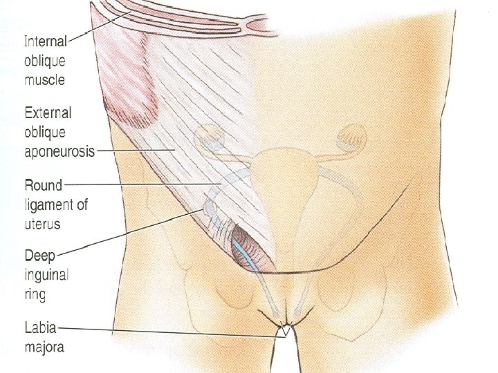 Functions of Inguinal Canal • It allows structures of spermatic cord to pass to and from the testis to the abdomen in male • Permits the passage of round ligament of uterus from the uterus to the labium majus in female