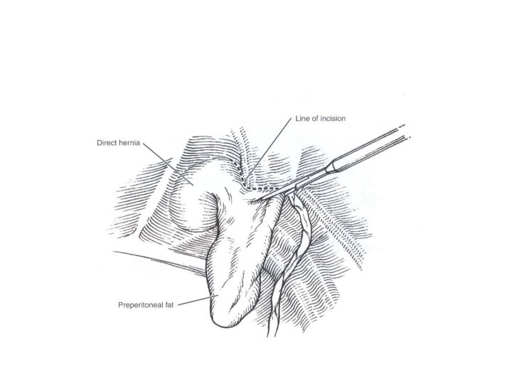 General Precautions • No place for routine antibiotic and thromboembolic prophylaxis, only in selected patients • Risk factors for wound and mesh infection – – – Advanced age Corticosteroid use Immunosuppression Obesity Diabetes Malignancy