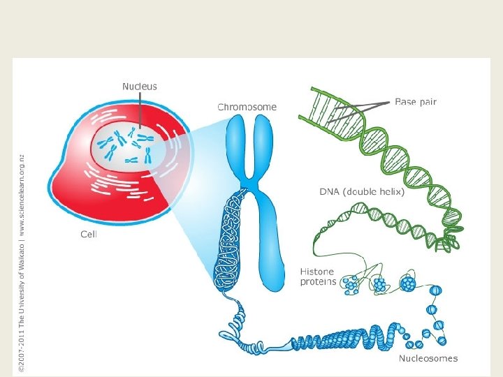 Chromosomes • A chromosome is an organized structure of DNA and protein found in cells.