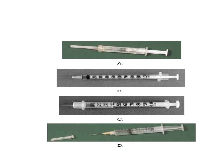 Common types of injections • 1 -Subcutaneous (SC) injection • 2 -Intramuscular (IM) injection • 3 -Intravenous (IV) injection