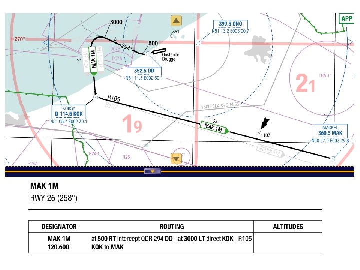 • Missed Approach at EBOS RWY 26: “At ‘DD’ the latest, right heading 050° and climb to 3000 ft, intercept QDM 130° to ‘ONO’. Do not cross Radial 040 from ‘KOK’. ”
