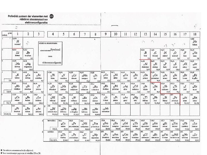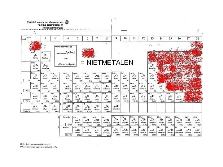 Indeling periodiek systeem Links en in het midden staan de metalen (behalve waterstof) Rechts staan de niet-metalen