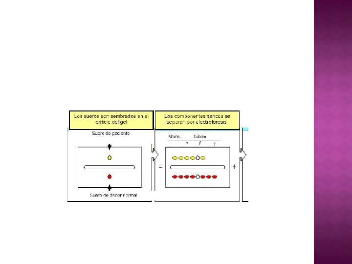 � Es una técnica especialmente eficaz para separar mezclas complejas de antígenos o anticuerpos. � Se aplica una corriente eléctrica para separar las diferentes proteínas presentes en una mezcla compleja. � Después de haberse completado la separación, se cambia la orientación de la corriente. En este momento se separan las proteínas a lo largo de un segundo eje.