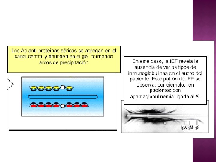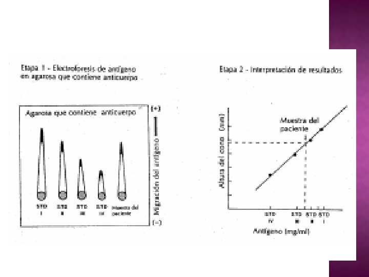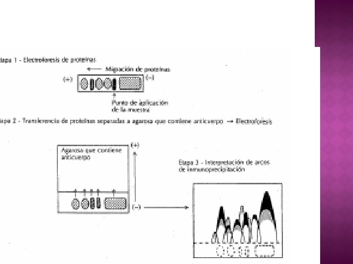 � Es una técnica cualitativa, que permite la identificación de diferentes componentes proteicos en distintas muestras biológicas (suero, orina) a través de arcos de precipitación. � El método que combina la electroforesis con la inmunodifusión doble. Aquí la mezcla de antígeno se somete primero a electroforesis a fin de separar sus componentes por carga.