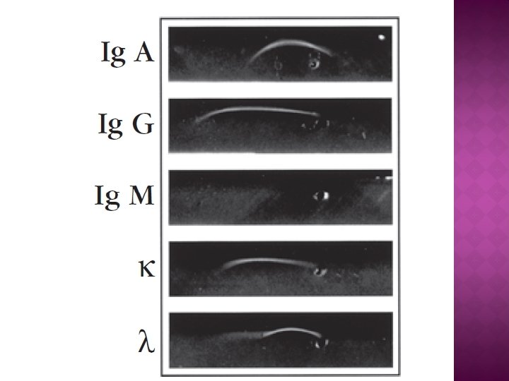 � Se usa para detectar la ausencia o presencia de proteínas en el suero, útil para determinar si un paciente produce cantidades bajas de uno o más isotipos, características de ciertas enfermedades de inmunodeficiencia. � Mieloma múltiple.
