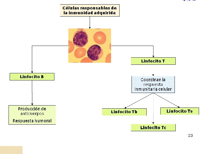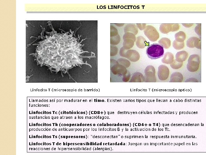 GLÓBULOS BLANCOS (4. 000 -10. 000 /mm 3 de sangre) Neutrófilos (70%) en infecciones bact. Diapédesis. Basófilos histamina) (producen (1%) Eosinófilos (4%) en estados alergicos e infercciones por parásitos GRANULOCITOS Monocitos (núcleo polimórfico)(5%) Cuando llegan a los tejidos se convierten en macrófagos. el conjunto de macrófagos se denomina s. retículo-endotelial AGRANULOCITOS Linfocitos (20 %) específicos en el reconocimiento de agentes patógenos