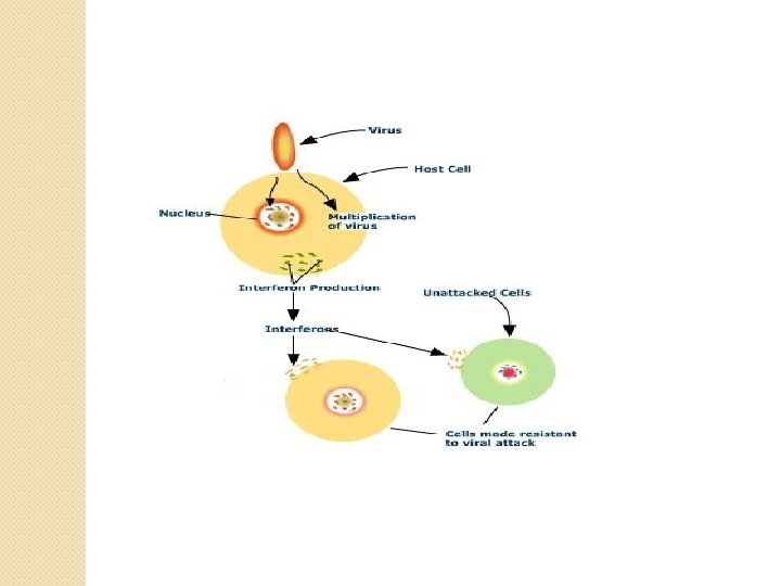 2. INTERFERÓN. Se denomina interferón a un conjunto de proteínas plasmáticas producidas por los linfocitos T, las células asesinas, los leucocitos o los fibroblastos que interfieren principalmente en la replicación de los virus en el interior de las células. En la especie humana hay tres tipos de interferón, α, β, γ. Los interferones α, β se producen y se liberan si los leucocitos y los fibroblastos quedan infectados por virus. Al unirse a otras células vecinas las estimulan para que produzcan enzimas denominadas proteínas antivirales que actuarán bloqueando la replicación de los virus cuando sean infectadas por ellos. El interferón γ es producido por linfocitos T y por células asesinas sanas cuando son sensibilizadas por antígenos extraños de virus, bacterias o células tumorales. Este interferón parece potenciar el efecto de linfocitos, células asesinas y macrófagos para destruir células infectadas o tumorales.