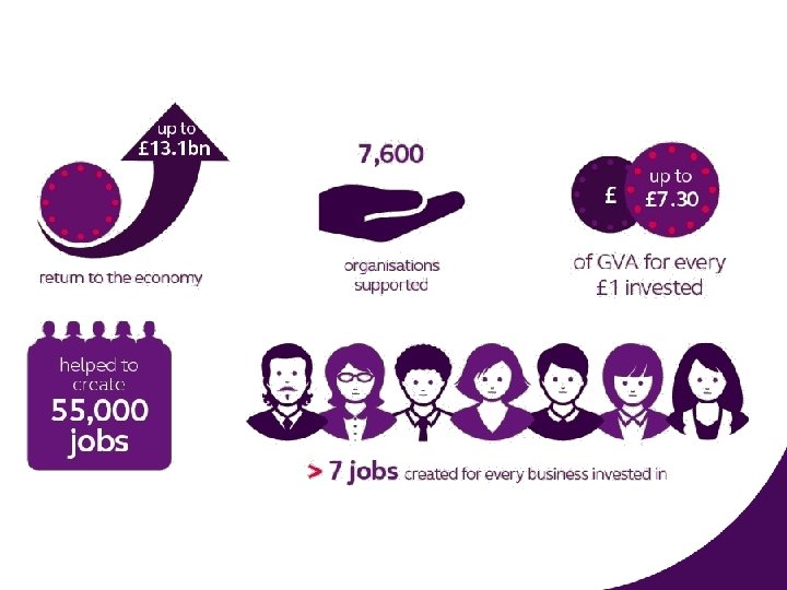 Connecting – Strengthening our networks § Linking businesses with academics, government, partners and funding. § Guiding and helping businesses navigate all the support opportunities that exist. § The Knowledge Transfer Network (KTN) and Enterprise Europe Network (EEN) help companies nationally and regionally. § Introduction of Innovate UK Regional Managers