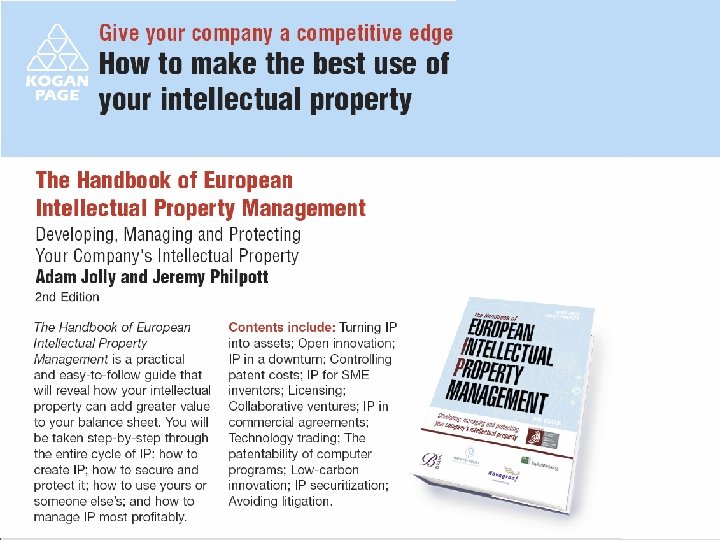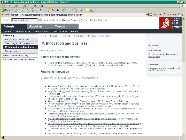 Promoting & supporting patent-related IP training • • • conferences, seminars and workshops expert speakers e-learning publications partnerships ip 4 inno