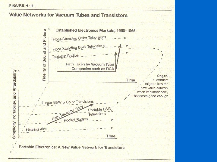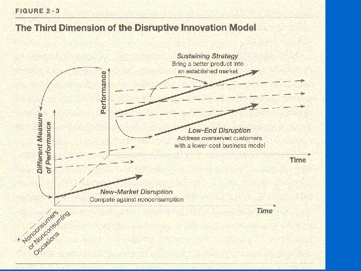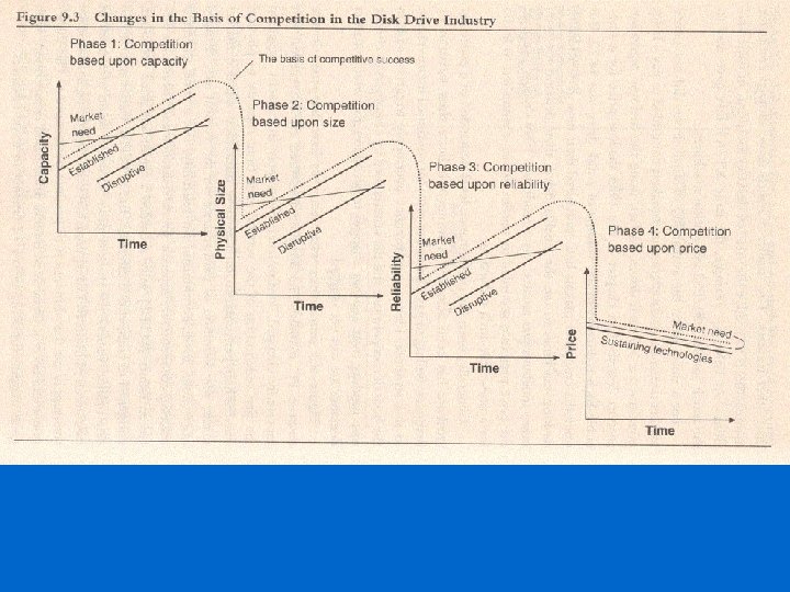 Sustaining vs. disruptive • Sustaining– better products, can be sold for higher prices to demanding customers; incumbents win • Disruptive – commercialization of simpler, more user-friendly products, which are cheaper and targeted for new or less demanding customers; newcomers win