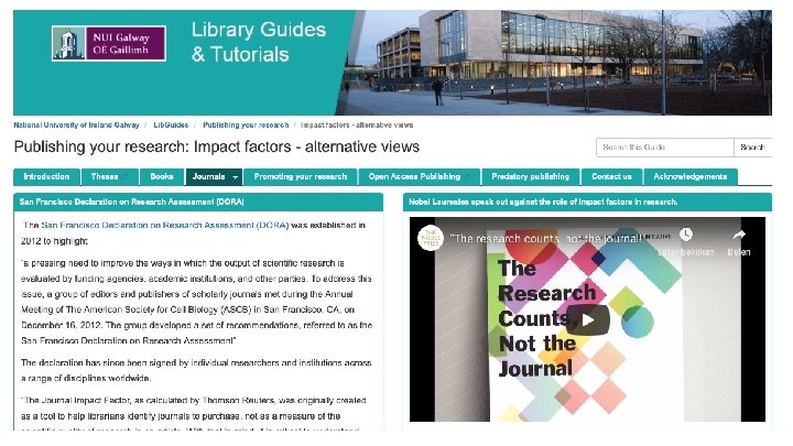 Online Learning • For example: Libguides National University of Ireland Galway https: //libguides. library. nuigalway. ie/Publishingyourresearch/IF alternativeviews