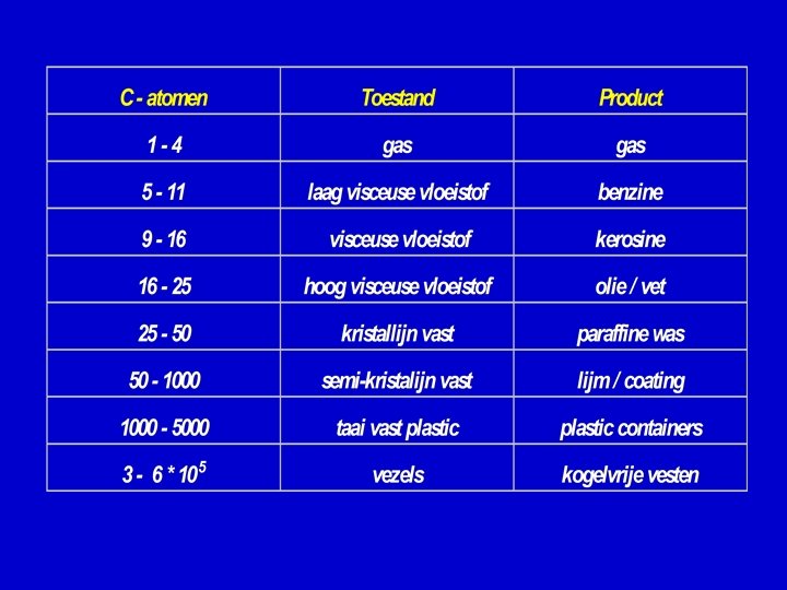 Technologie: • mengen • drogen • vormgeven • verpakken / opslag • toepassen dispergerende fase gedispergeerde fase Materialen: • metalen • polymeren • ceramiek • additieven vast vloeibaar gas legeringen composieten beton suspensie inkt verf aerosol stof rook vloeibaar pasta boter emulsie melk aerosol mist haarlak gas schuim matras schuim slagroom gas lucht E i g e n s c h a p p e n