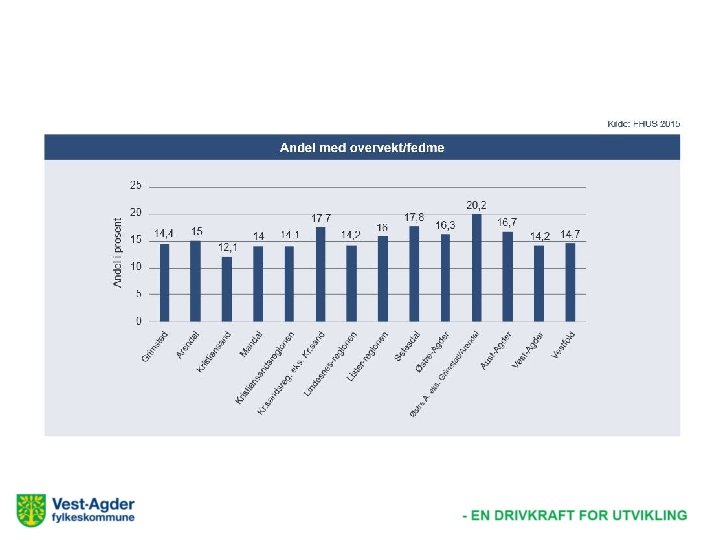 st Ø re ks re Ag de st rim G er gd -A st 10, 9 Ve er gd -A st da l Ar en 11, 6 Au og de r Ag 10, 3 ad re al sd te Se n n io ne eg er -r Ø st st d on e gi -re ne s an tia ns is Kr n 6, 9 Li nd es ek s on e gi 8, 8 Li n l an da M re ds an tia ns is Kr 8 on e gi re ds an ns tia is 10 Kr nd ns a tia l Andel (prosent) 12 Kr is en da Ar ad st G rim Andel med psykiske plager i Agder 14 12, 1 10 10, 7 9, 3 8 8, 3 7 6, 2 6 4 2 0
