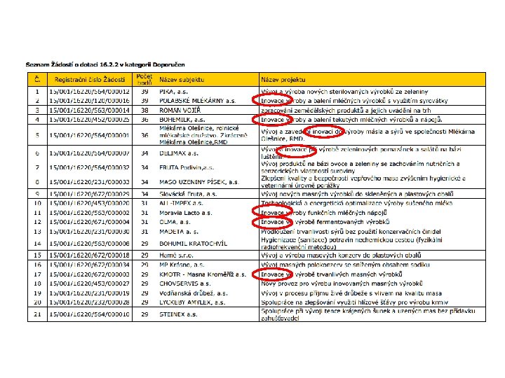 1. Kolo PRV operace 16. 2. 2 – operace zaměřená na rozvoj inovací Technologie, produkty nebo procesy musí být tedy minimálně pro podnik nové (nebo podstatně zdokonalené). To zahrnuje významná zlepšení technických vlastností, komponentů a materiálů, software, uživatelské vstřícnosti nebo jiných funkčních charakteristik. Nová technologie, produkt nebo proces musí být vyvinuty ve spolupráci s výzkumným subjektem. Inovativnost, efektivnost a proveditelnost projektu, Hodnotitelská komise před schválením projektu. http: //eagri. cz/public/web/file/413248/Pravidla_16. _2_na_web. pdf posoudí odborná