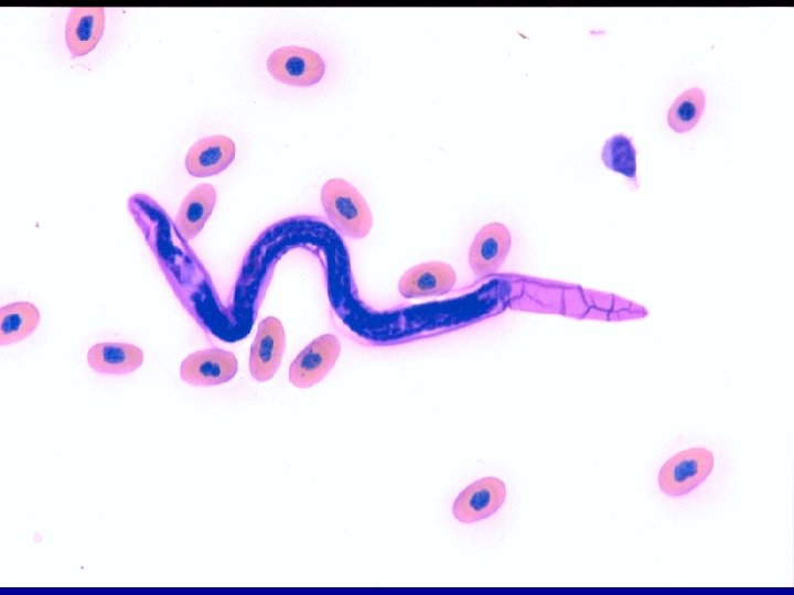 Periodicity • Microfilariae in peripheral blood at periodic intervals • Wucheria bancrofti – In peripheral blood between 10: 00 pm-2: 00 am – In blood of deep tissues during the day – Coincides with feeding time of intermediate hosts