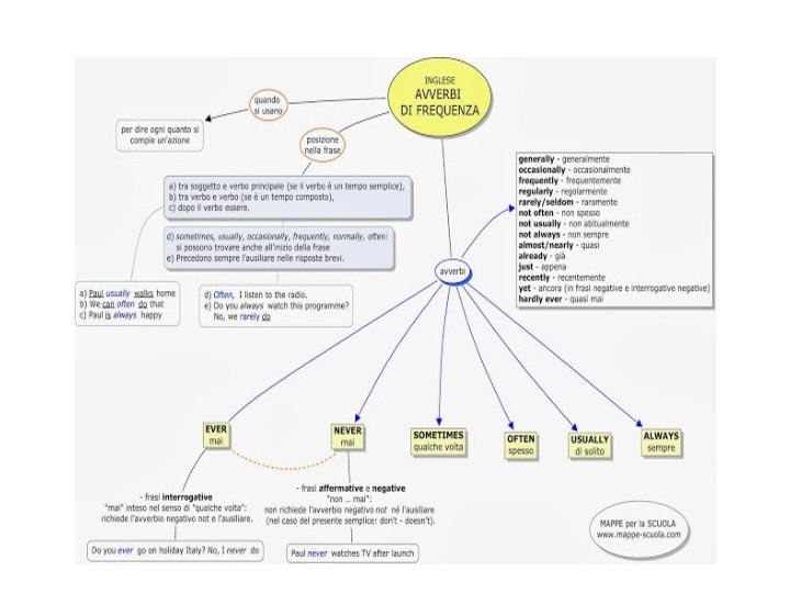 Le MAPPE per lo studio L’uso di MAPPE per lo studio consente di usare compiti POLIRISOLVIBILI e di andare Incontro alle necessita di tutti gli alunni. L’uso di MAPPE CONCETTUALI favorisce: • l’analisi del contenuto • l’evidenziazione di parole chiave • l’associazione con immagini • la comprensione di causa ed effetti • i nodi che collegano logicamente le informazioni • la capacita di studio e memorizzazione • la capacita di esposizione • il lavoro cooperativo Esistono software a pagamento e sw free: Cmap Tools, Mind. Manager, Supermappe Nelle situazioni di maggior difficolta nella lettura e possibile far ricorso a lettori vocali (anch’essi a pagamento o free)