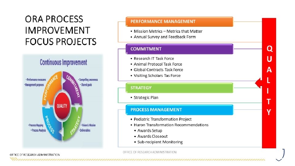 Project Management and Reporting Coordinate - Project meetings Develop - Project charters for each workstream Track – document progress and bottlenecks Distribution - Monthly status reports to Sponsor and Champion OFFICE OF RESEARCH ADMINISTRATION