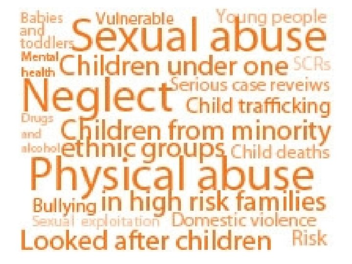 Recent research tells us… • One in 7 (13. 3%) secondary school children have been neglected at some point, with one in 10 children (9. 8%) severely neglected. • Neglect is the most common reason for a child to be the subject of a child protection plan or on a child protection register in the UK. • One in 20 children (4. 8%) have experienced contact sexual abuse. • More than one in three children (34%) who experienced contact sexual abuse by an adult did not tell anyone else about it.