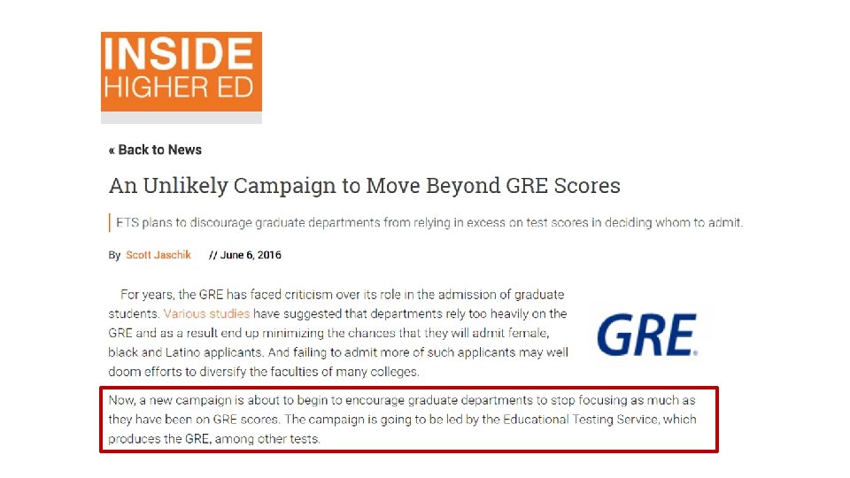 POP QUIZ With all else equal, which folder do you admit? FOLDER A GRE-Q: 740 (80%) FOLDER B GRE-Q: 800 (perfect) © JRP 2018