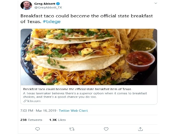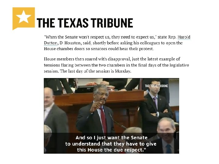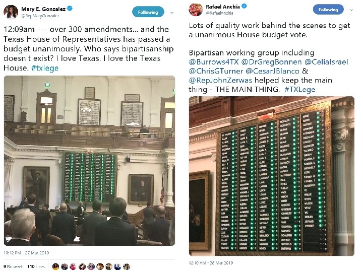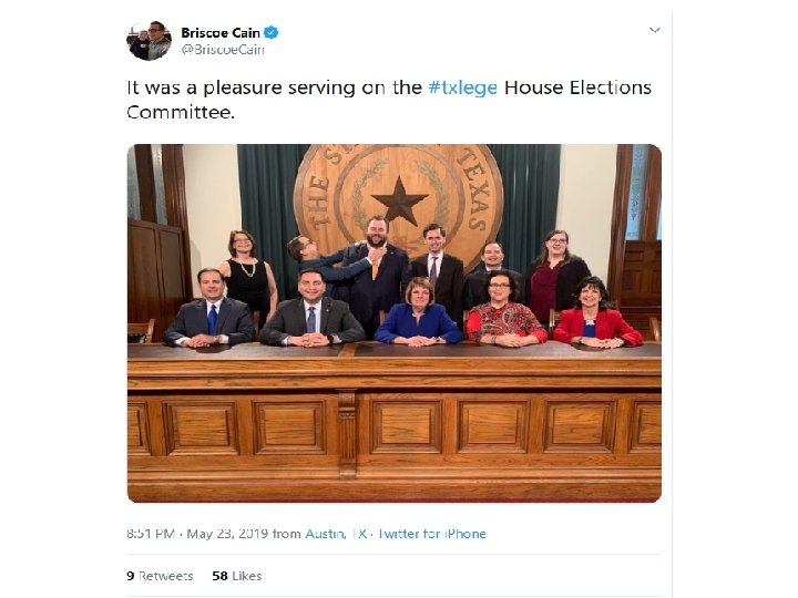 Changes in the #TXlege • Texas politics mirroring national politics – Party switching (WD 40 s in 1980 s) – Party purity, party activists – Gerrymandering* • New media allows for Members to avoid party, public is now able to see more of what the Lege does