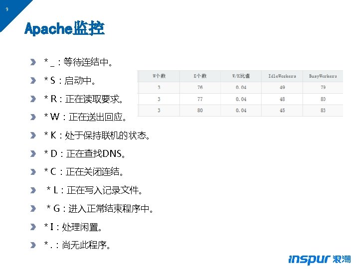 Inspur group 6 tar xzvf ifstat1 1 tar Slides: 14 Download presentation Inspur group 日常运维及监控 6 主机监控 tar xzvf ifstat-1. 1. tar. gz cd ifstat-1. 1. /configure make install 7 Apache日常监控 8 Apache监控配置之前首先需要确认开启了Apache状态的功能模块 server-status。 确保“Load. Module status_modules/mod_status. so”前面没有#号,如果没有加载这个模块, 需重新编译Apache,编译时加上--enable-module=so参数即可; 在httpd. conf配置文件中增加如下内容: <Location /show-status> Set. Handler server-status Order Deny, Allow from all </Location> Extended. Status On 访问apache的status页面即可(http: //IP: port/show-status) 10 Apache监控 日志文件切割 打开Apache的conf/httpd. conf配置文件并找到下面两条配置: Error. Log logs/error. log Custom. Log logs/access. log common 错误日志文件error. log # 每天生成一个错误日志文件 Error. Log "|/opt/apache-2. 2. 26/bin/rotatelogs /opt/apache-2. 2. 26/logs/error-%Y-%m-%d. log 86400“ 日志文件access. log # 每天生成一个访问日志文件 Custom. Log "|/opt/apache 2. 2. 26/bin/rotatelogs /opt/apache-2. 2. 26/logs/access-%Y%m-%d. log 86400" common 11 Tomcat日常监控 14 谢谢大家! Inspur group 2020/11/22