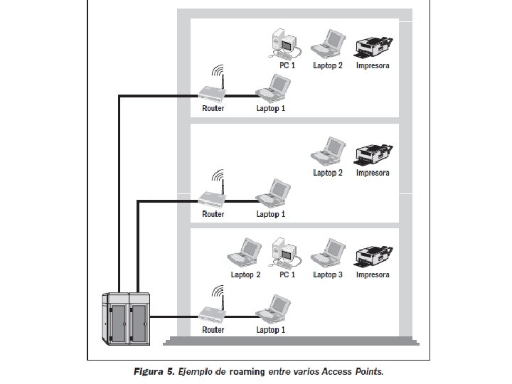 EL HARDWARE Para establecer una conexión de tipo inalámbrico es necesario, al menos, realizar dos cosas: instalar placas de red inalámbricas en cada una de las PC y configurar un Access Point. Como vimos anteriormente, el Access Point es un dispositivo que permite ampliar el alcance de la señal entre las dos o más computadoras conectadas a la red repitiéndola. Este dispositivo es normalmente colocado en un lugar alto, pero podría colocarse en cualquier lugar donde se obtenga la cobertura de radio deseada. El usuario accede entonces a la red WLAN a través de adaptadores (placas de red) conectados a su computadora. Éstos proporcionan una interfaz entre el sistema operativo del usuario y las ondas mediante una antena. En una configuración típica de WLAN sin cable, los Access Points (switches inalámbricos) reciben la información, la almacenan y la transmiten entre las computadoras que acceden a él. Si tenemos un único Access Point, éste soportará un pequeño grupo de usuarios y funcionará en un rango de treinta a varios cientos de metros (según si disponemos de antenas amplificadoras o no).