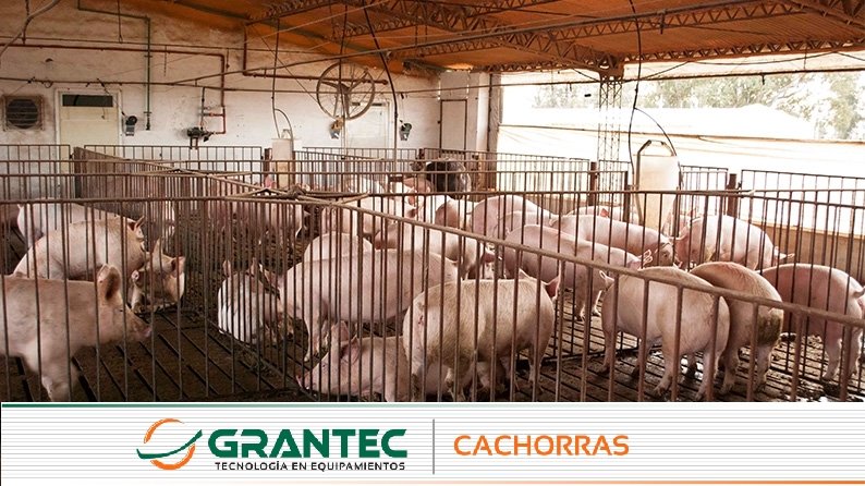 Edad de Ingreso: 70 días de vida Peso de Ingreso: 30 kgs apróximadamente Edad de Egreso: 200 días de vida Peso de Egreso: 135 kgs apróximadamente Estadía: 130 días apróximadamente Galpón: abierto Ventilación: natural con cortinas y ventiladores de movimiento de aire Densidad: 1 cachorra cada 1, 5 m² Pisos: full slat Agua de bebida: 1 chupete cada 5 cachorras Alimentación: 1 silo c/linea de distribución Comedero: 1 boca cada 10 cachorras preferentemente seco-humedo Refrigeración: sistema de riego tipo fogger