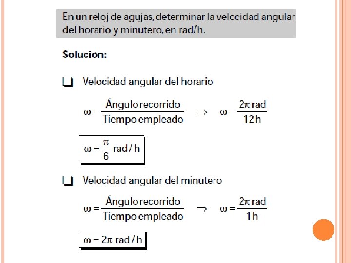 Ejemplo 1: Determine el periodo y la frecuencia para el segundero , el minutero y el horario de un reloj. Respuesta: Ts= 60 s Tm= 3600 s fs= 0. 017 Hz TH= 43200 s f. H=2. 3*10 -5 Hz fm=2. 8*10 -4 Hz 13