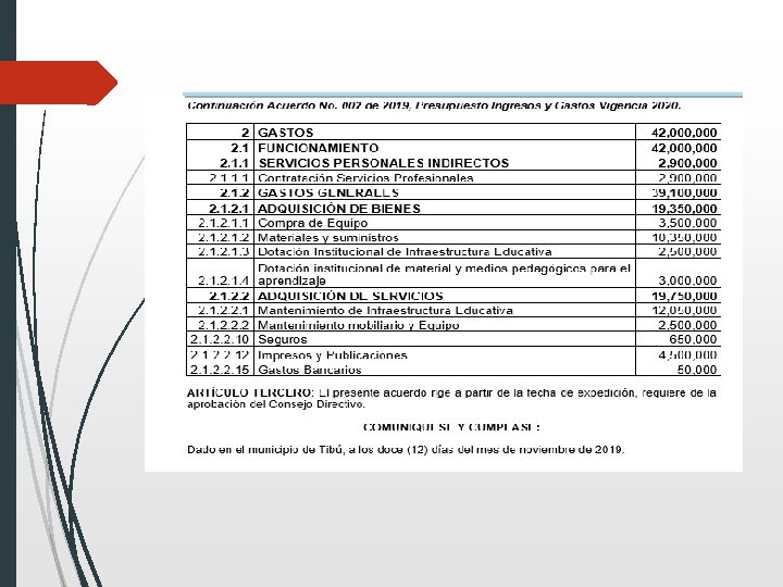 MODELO DE GESTIÓN RECURSOS DE GRATUIDAD Vigencia: 2019 Nombre Establecimiento: IE. INTEGRADO LA LLANA Departamento: NORTE DE SANTANDER Municipio: TIBU Estado: Pagado Recursos asignados: $ 38, 221, 410. 00