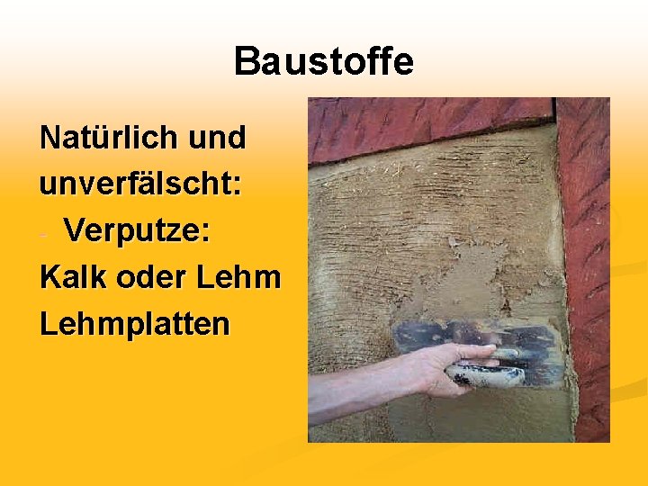 Baustoffe Natürlich und unverfälscht: - Verputze: Kalk oder Lehmplatten