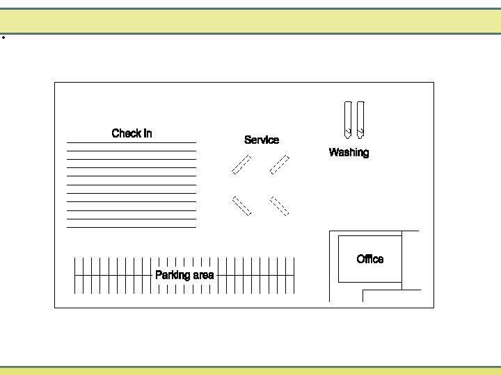 SERVICE LAYOUT • • The major factors considered for service providers, is an impact of location on sales and customer satisfaction. Customers usually look about how close a service facility is, particularly if the process requires considerable customer contact. Hence, service facility layouts should provide for easy entrance to these facilities from the freeways. Well-organized packing areas, easily accessible facilities, well designed walkways and parking areas are some of the requirements of service facility layout. Service facility layout will be designed based on degree of customer contact and the service needed by a customer. These service layouts follow conventional layouts as required. For example, for car service station, product layout is adopted, where the activities for servicing a car follows a sequence of operation irrespective of the type of car. Hospital service is the best example for adaptation of process layout. Here, the service required for a customer will follow an independent path.