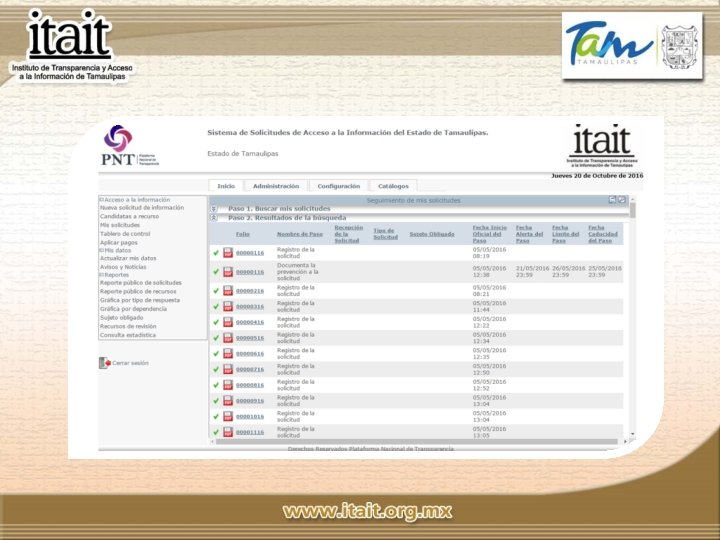 IMPLICACIONES • Mayor coordinación hacia el interior de las áreas administrativas de los Sujetos Obligados. • Estrecha coordinación, colaboración, apoyo y suma de esfuerzos ITAIT-Sujetos Obligados. • Creación de Unidades y Comités de Transparencia. • Facultad de Verificación de las Obligaciones de Transparencia. • Denuncia por Incumplimiento a las Obligaciones de Transparencia.