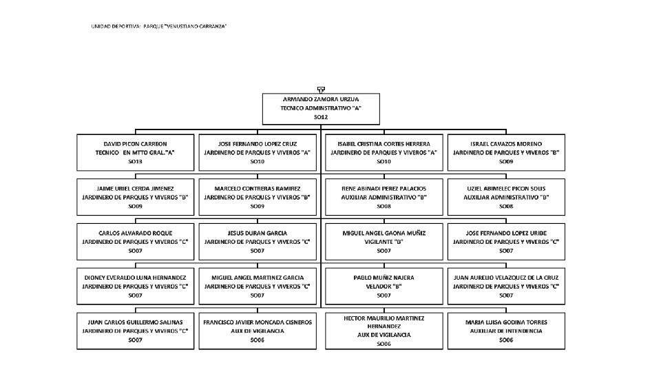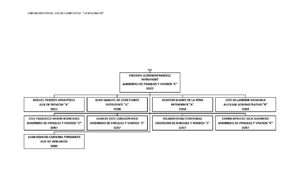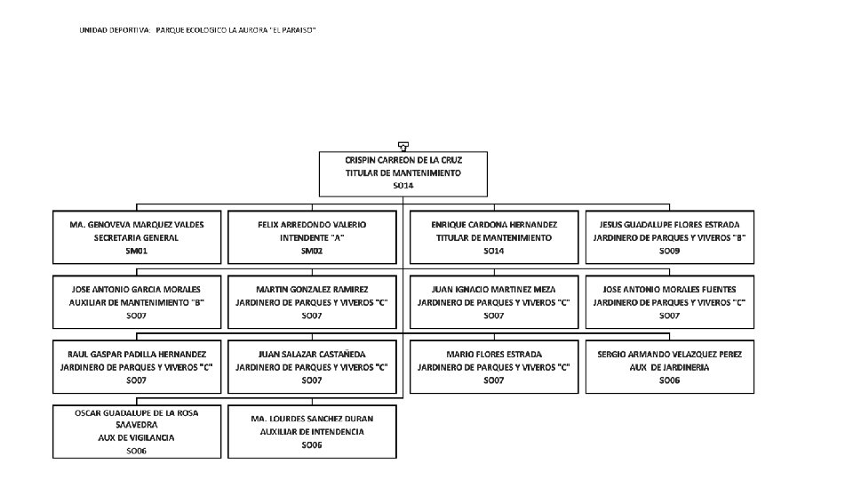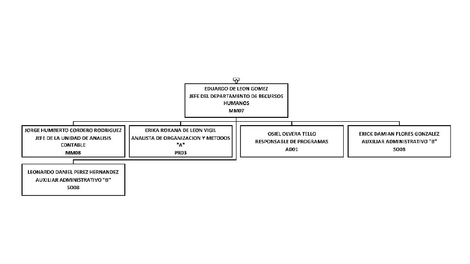 ELVA LILIANA GUERRERO MORALES COORDINADORA DE FINANZAS Y PRESUPUESTO MM 06 JUDITH GUADALUPE GARZA CARRILLO RESPONSABLE DE PROGRAMAS AD 01 HECTOR MONTEMAYOR ELIZONDO SUBDIRECTOR DE INGRESOS PROPIOS EN UNIDADES DEPORTIVAS MM 05 MIRNA LUEVANO CEPEDA SUBDIRECTORA DE FINANZAS Y PRESUPUESTOS MM 06 VICTOR MANUEL DE JESUS BURCIAGA VALDES AUXILIAR ADMINISTRATIVO "B" SO 08 EDUARDO DE LEON GOMEZ JEFE DEL DEPARTAMENTO DE RECURSOS HUMANOS MM 07