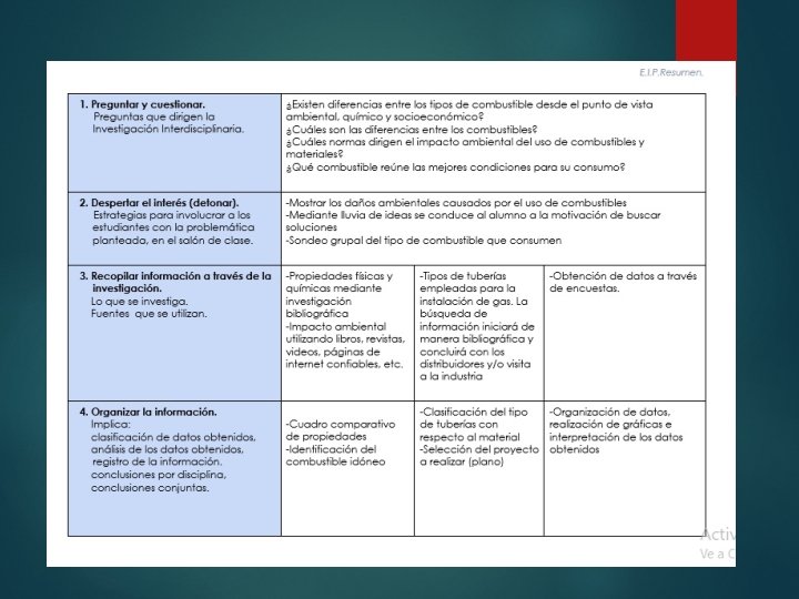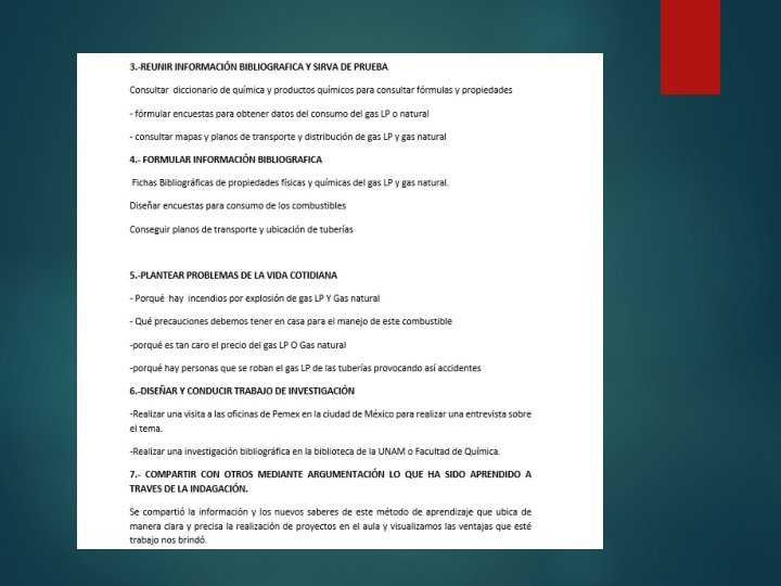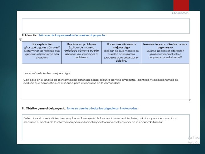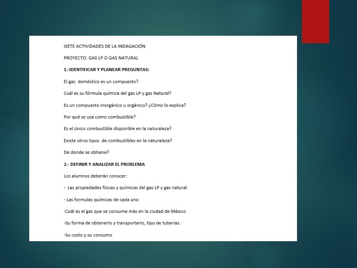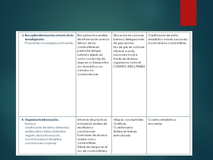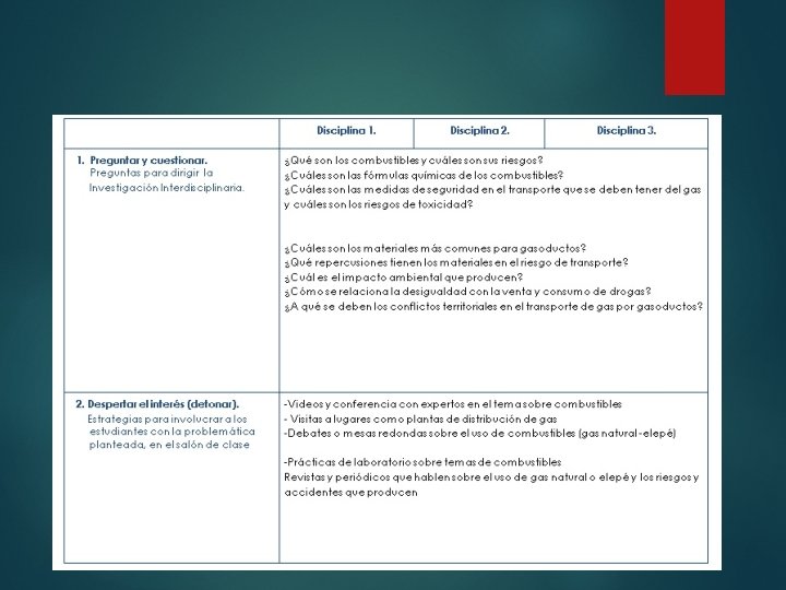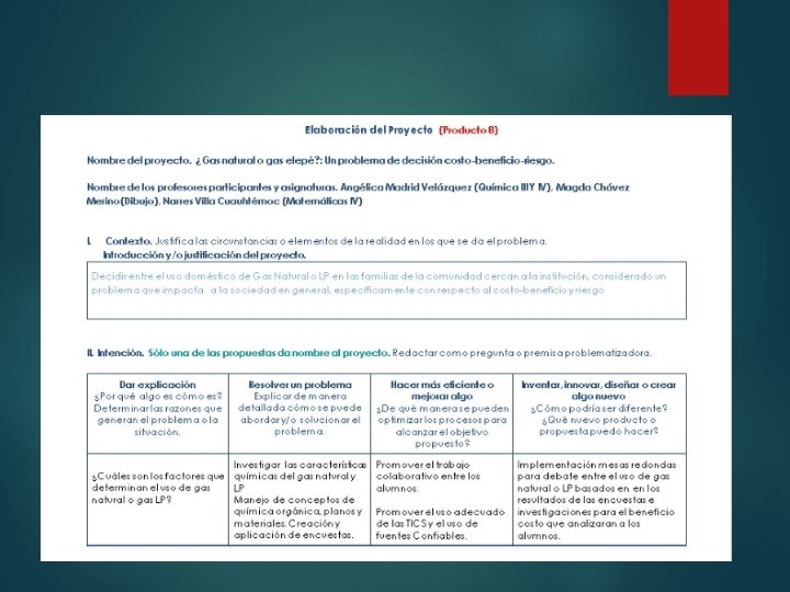 Primera etapa del proyecto Química: Comparación de propiedades físicas y químicas de ambos combustibles. Estadística: Diseño de encuestas y recolección de datos. Dibujo: Diseño de la instalación. Biología: Impacto ambiental.