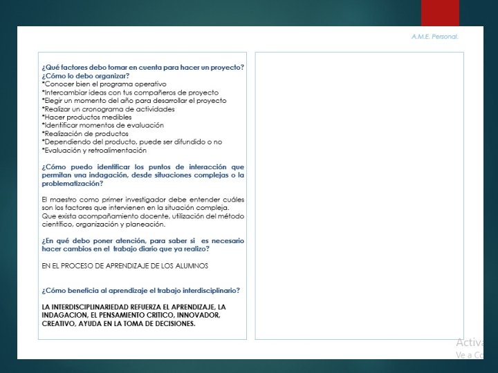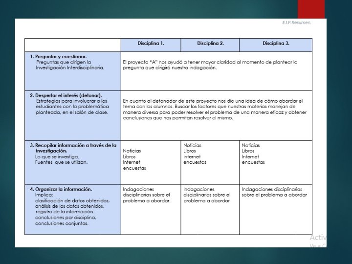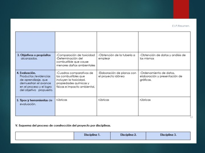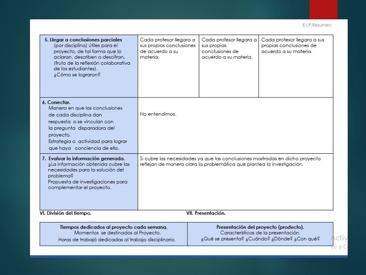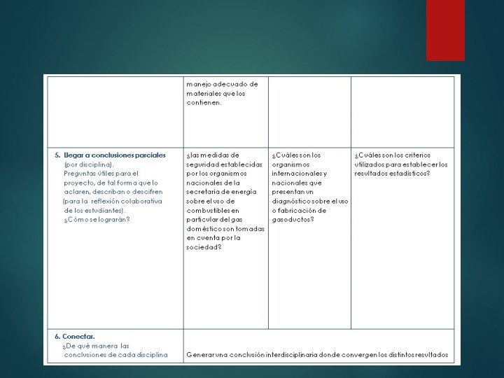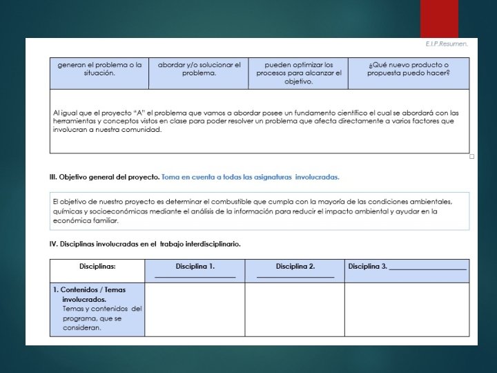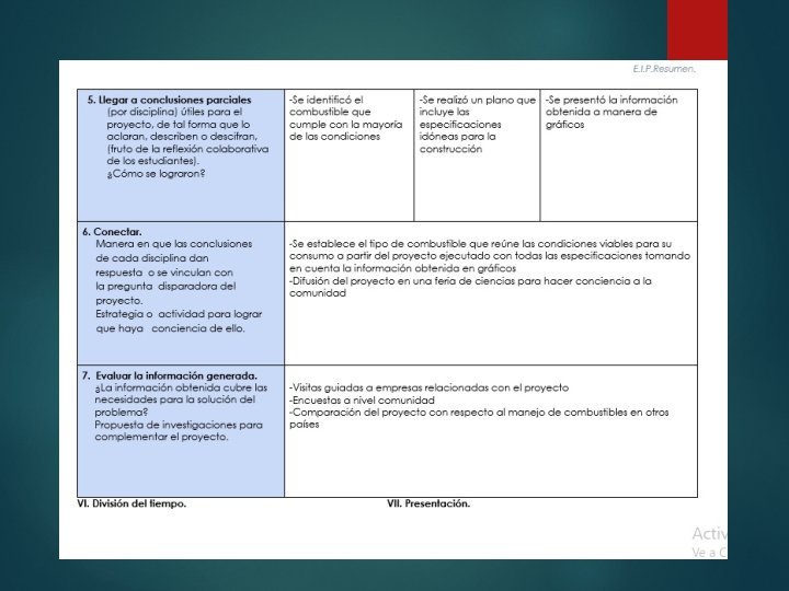 Tercera etapa del proyecto Química: Análisis de resultados científicos (químicos, físicos y ambientales). Estadística: Análisis de resultados científicos y económicos; además de las conclusiones. Dibujo: Análisis de resultados, resultado de planos y análisis de resultados (construcción) desde el punto de vista económico (presupuestos). Biología: Conclusiones acerca del medio ambiente.