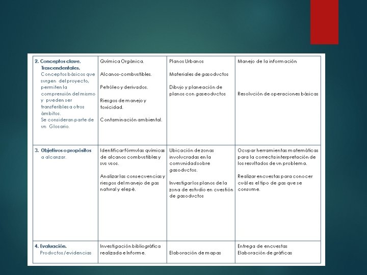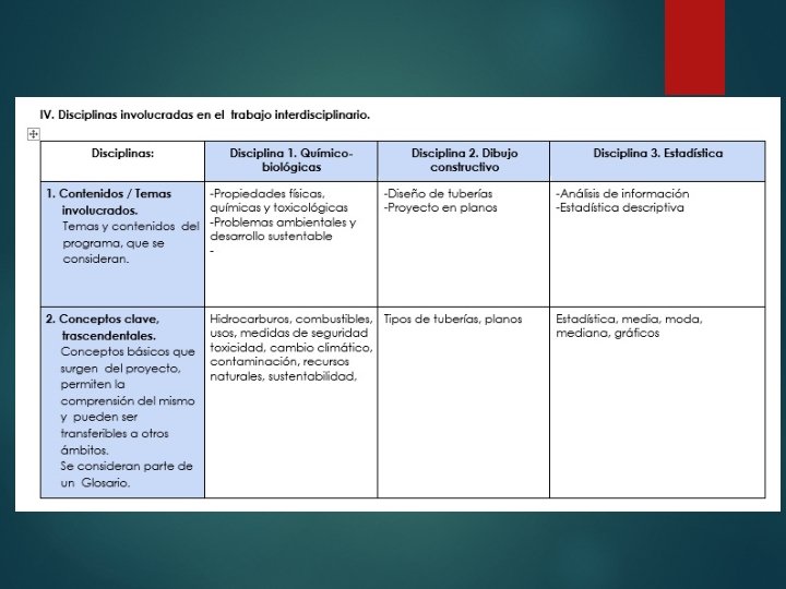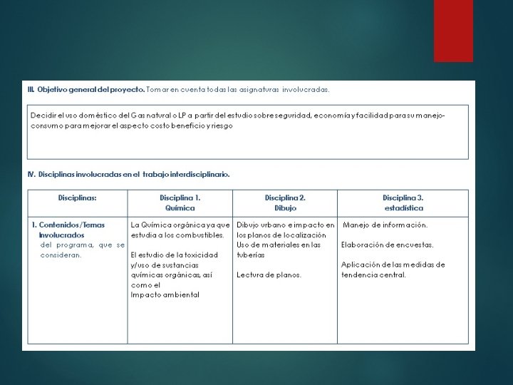 Segunda etapa del proyecto Química: Balance estequiométricos. de materia y cálculos Estadística: Análisis de los resultados obtenidos en la encuesta realizada, interpretación de dichos datos por medio de tablas y gráficas. Dibujo: Tipos de materiales en tuberías, propiedades de construcción. Biología: Análisis del impacto ambiental.