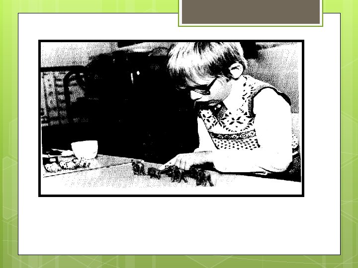 b) Programa de adiestramiento: se compone de 15 áreas didácticas 1. 2. 3. 4. 5. 6. 7. 8. 9. 10. 11. 12. 13. 14. 15. Procedimientos de exploración y búsqueda. Constancia de formas y objeto Designación y reconocimiento de objetos Discriminación del detalle. Objetos tridimensionales Discriminación del detalle. Representación y formas bidimensionales Percepción de los objetos en dos dimensiones: la perspectiva. Percepción de objetos de dos dimensiones: rasgos críticos La percepción en dos dimensiones. Ilustraciones de libros La simetría Los modelos. La comunicación mediante gestos corporales y faciales. La coordinación óculo-manual El color. La percepción de la dirección y del movimiento Asociación con los demás sentidos.