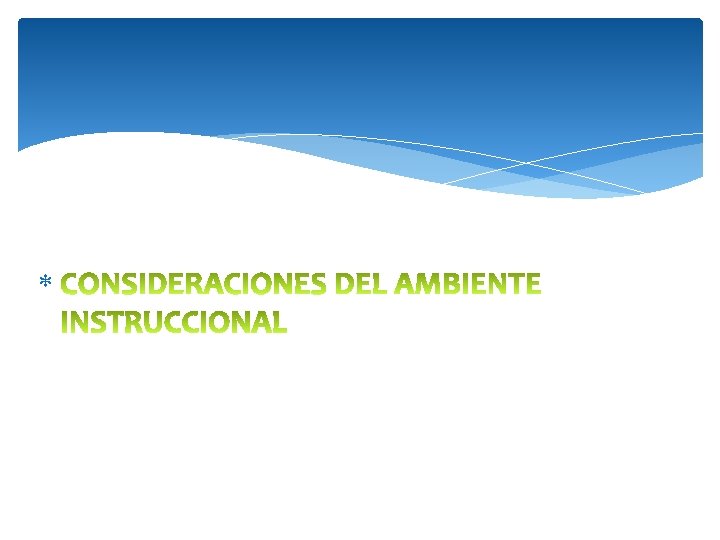 transferencia y generalización de habilidades del ambiente escolar a la comunidad Instrucción basada en la comunidad Ambiente instruccional: Ambiente de aprendizaje AMBIENTE EDUCATIVO Opciones de ubicación incluir oportunidades de interacciones para mejorar las habilidades de comunicación y sociales Tecnología educativa basadas en las necesidades de los alumnos