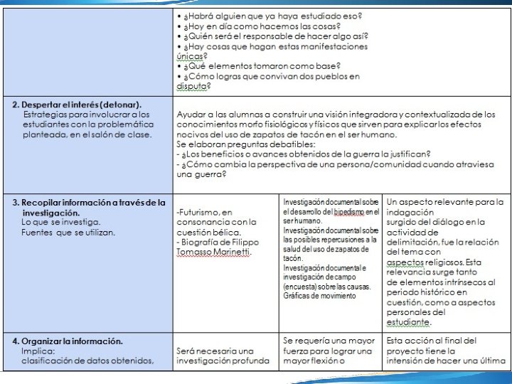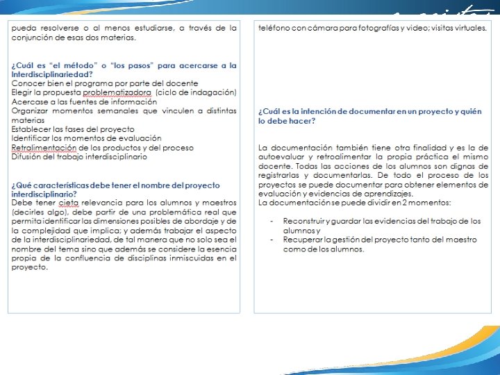 19. Reflexión. Grupo Interdisciplinario. 20. Organizador gráfico. Preguntas esenciales. 21. Organizador gráfico. Proceso de indagación. 22. A. M. E. General. 23. E. I. P. Resumen. 24. E. I. P. Elaboración de proyecto. 25. Fotografías de la 2 a R. T. 26. Evaluación, Tipos, Herramientas y de aprendizaje. 27. Evaluación. Formatos. Prerrequisitos. 28. Evaluación. Formatos. Grupo Heterogéneo. 29. Lista de pasos para realizar una infografía. 30. Infografía. 31. Reflexiones personales.