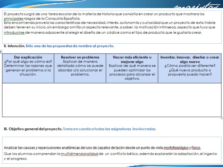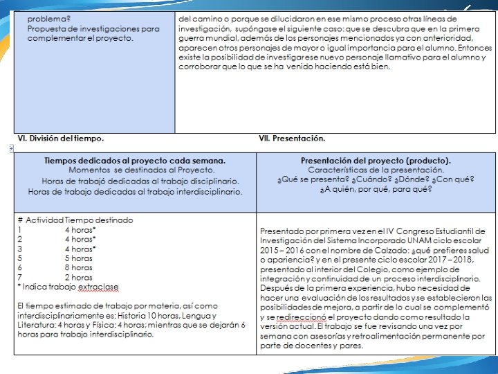 Índice 1. Nombre y logotipo del Colegio. 2. Número de equipo. 3. Nombres de maestros participantes. 4. Asignatura de cada maestro. 5. Ciclo escolar. 6. Fecha de inicio y término. 7. Nombre del PVE/Proyecto. 8. Índice. 9. Producto 1. C. A. I. A. C. 10. Producto 3. Fotografías. 11. Producto 2. Organizador gráfico. Conexiones. 12. Introducción o Justificación. Descripción del Proyecto. 13. Objetivo General del Proyecto. 14. Objetivo o propósitos a alcanzar de cada Asignatura. 15. Preguntas generadoras. 16. Contenido. Temas y productos propuestos. 17. Planeación General. 18. Planeación día a día.