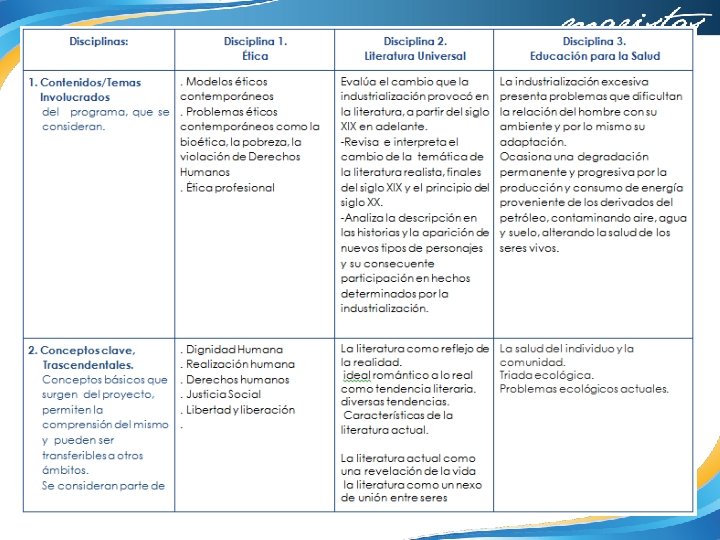 Objetivo de cada asignatura Ética Literatura Universal Educación para la Salud