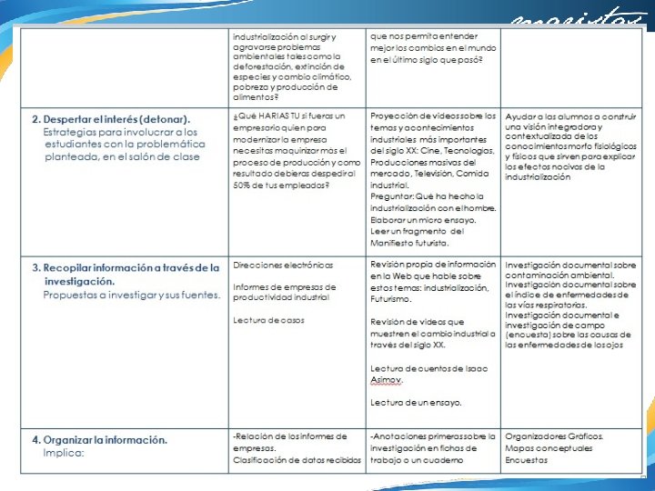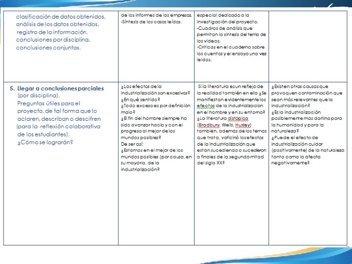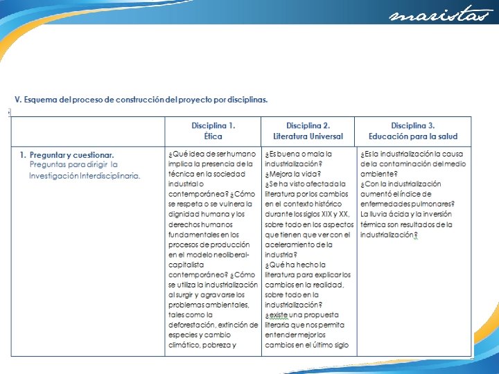 Preguntas generadoras Ética: ¿Qué idea de ser humano implica la presencia de la técnica en la sociedad industrial contemporánea? ¿Cómo se respeta o se vulnera la dignidad humana y los derechos humanos fundamentales en los procesos de producción en el modelo neoliberal-capitalista contemporáneo? Educación para la Salud: ¿Cómo se utiliza la industrialización al surgir y agravarse los problemas ambientales, tales como la deforestación, extinción de especies y cambio climático, pobreza y producción de alimentos? ¿Cuáles son las repercusiones en la salud humana como resultado de las cargas excesivas de trabajo y el hacinamiento en las grandes ciudades? Literatura Universal: ¿Cuáles son los cambios en el contexto histórico, económico y social de finales de siglo XIX y principios de siglo XX que influyen en la elaboración de expresiones literarias ?
