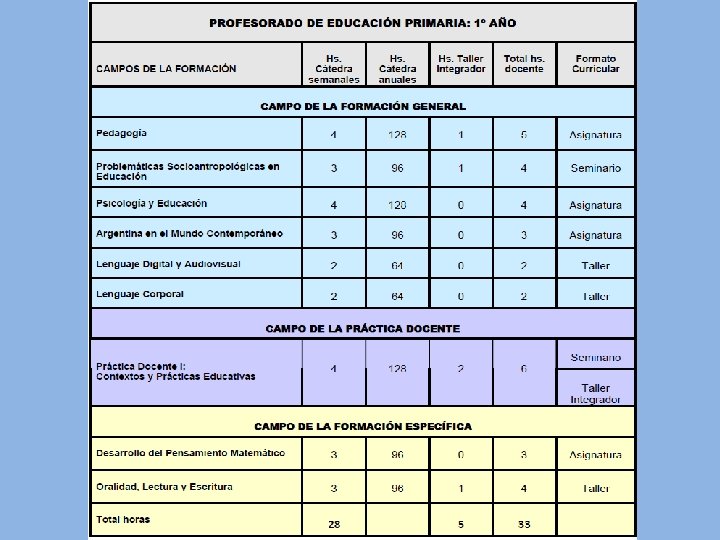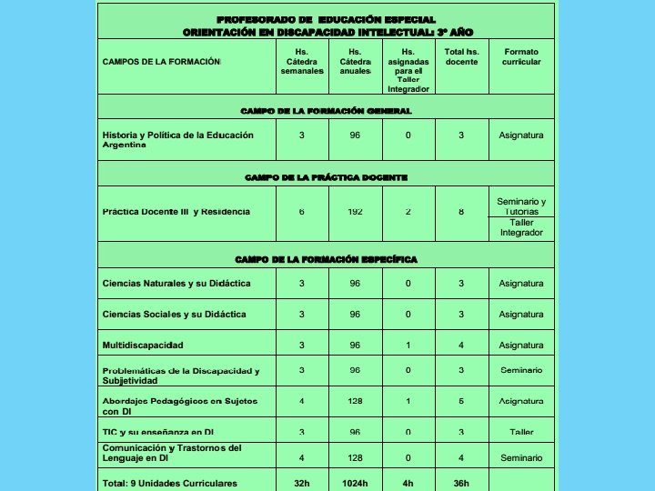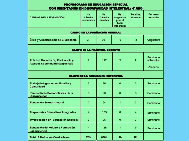 Las unidades curriculares que conforman el diseño de la formación docente se organizan en relación a una variedad de formatos que, considerando su estructura conceptual, las finalidades formativas y su relación con las prácticas docentes, posibilitan formas de organización, modalidades de cursado, formas de acreditación y evaluación diferenciales. La coexistencia de esta pluralidad de formatos habilita, además, el acceso a modos heterogéneos de interacción y relación con el saber, aportando una variedad de herramientas y habilidades específicas que en