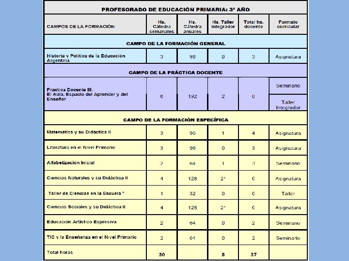 Asignatura: se define por la organización y la enseñanza de marcos disciplinares. Brinda modelos explicativos propios de las disciplinas de referencia y se caracteriza por reconocer el carácter provisional y constructivo del conocimiento. Se sugiere para su desarrollo la organización de propuestas metodológicas que promuevan el análisis de problemas, la investigación documental, la interpretación de datos estadísticos, la preparación de informes, el desarrollo de la comunicación oral y escrita, entre otros. En relación a la evaluación se propone la