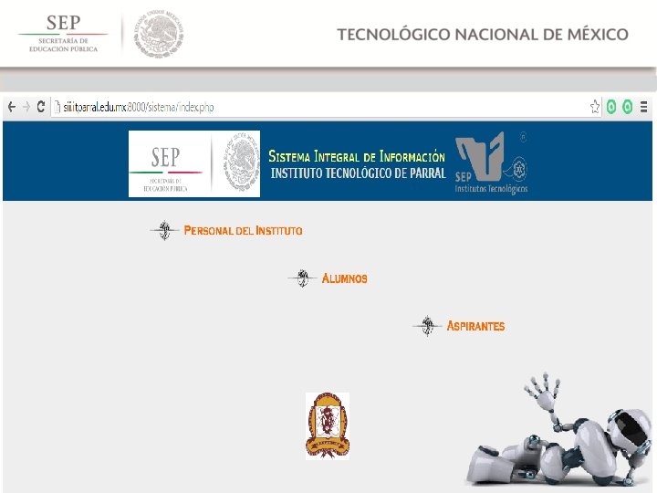 INGRESAR A LA SIGUIENTE DIRECCIÓN: sii. itparral. edu. mx: 8000/sistema/ UTILIZAR PREFERENTEMENTE COMO NAVEGADOR MOZILLA FIREFOX