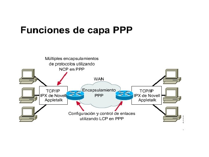 PPP es el protocolo WAN más popular y más utilizado, ofrece las siguientes funciones: - Control de la configuración del enlace de datos -Proporciona asignación dinámica de direcciones IP - Multiplexión de protocolo de red - Configuración de enlace y verificación de la calidad del enlace - Detección de errores - Opciones de negociación para destrezas tales como negociación de la dirección de capa de red y negociaciones de compresión de datos