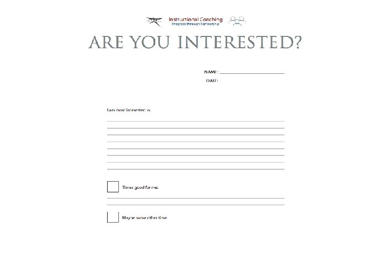Enroll teachers l Large-group presentation pg. 96 l Small-group presentation pg. 95 l Informal conversations (one to one) pg. 98 l Principal (or other) referral pg. 98 l Interview www. instructionalcoach. org